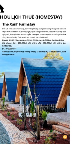 Địa chỉ: 74 Nguyễn Văn Trỗi, tổ 4, thị trấn Di Linh, huyện Di Linh, tỉnh Lâm Đến với The Xanh Farmstay, bên trong những bungalow sang trọng, bạn sẽ cảm